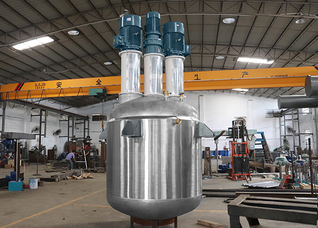 多功能強(qiáng)力分散攪拌釜由帶刮壁式攪拌器和高速分散器組成,兩組攪拌器同時(shí)作業(yè)使物料收到強(qiáng)烈的剪切,混合作用,達(dá)到快速混合的目的。攪拌器一般分為錨式和碟式兩種,針對(duì)不同粘度、比重的物料和不同生產(chǎn)工藝要求可以合理設(shè)計(jì)攪拌形式。